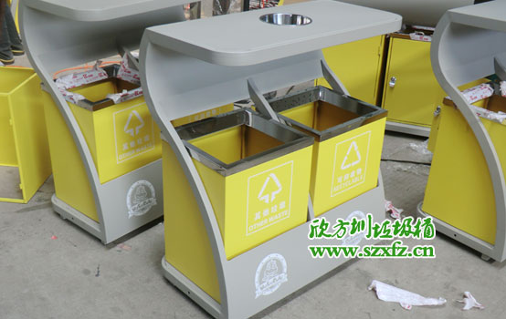 海南省海口市鋼制垃圾桶,是按照顧客的圖紙要求來制作。垃圾桶頂部弧形設計,呈現愛心形狀,用來防止雨水傾入內桶。左右兩桶,采用黃顏色噴漆,內桶充分利用空間。簡約搭配,巧妙的設計,多了一份有特色,有創意,有內涵!