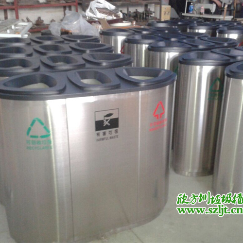 不銹鋼三孔分類環保回收箱使用范圍廣,表面光滑、亮麗,是電梯口、寫字樓、學校、物業、賓館、酒店、機場、汽車站等擺放的首選。