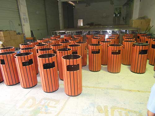 2.鋼木垃圾桶工藝:鋼木垃圾桶在完成鋼材支架和實木貼裝過后,還會采用先進噴塑技術,對表面進行防腐處理,同時還要經歷耐高溫測試,進一步提升鋼木垃圾桶的品質。