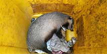 9月11日上午7點(diǎn)左右,南京鼓樓區(qū)建寧路200號(hào)附近一居民小區(qū),保潔員周某報(bào)警,稱她在小區(qū)垃圾箱內(nèi)發(fā)現(xiàn)一只疑似已懷孕的不知名野生動(dòng)物,看上去很兇,現(xiàn)在被困桶內(nèi)...