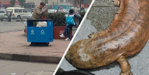 成都火車站環衛垃圾桶爬出娃娃魚驚呆市民