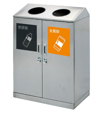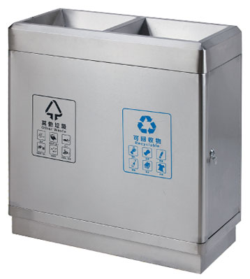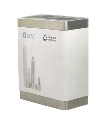 深圳新標準城中村街道社區不銹鋼五分類垃圾桶由有害垃圾、玻璃、金塑紙(為金屬、塑料、紙張的簡稱)、廚余垃圾、其他垃圾這5分類不銹鋼垃圾桶組合而成。其中金塑紙、其他垃圾日常產生量較大,所以分類收集容器也