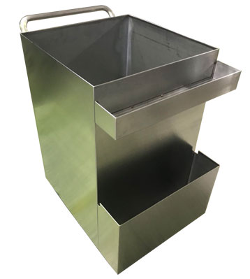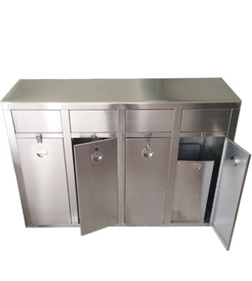 深圳新標準城中村街道社區不銹鋼五分類垃圾桶由有害垃圾、玻璃、金塑紙(為金屬、塑料、紙張的簡稱)、廚余垃圾、其他垃圾這5分類不銹鋼垃圾桶組合而成。其中金塑紙、其他垃圾日常產生量較大,所以分類收集容器也