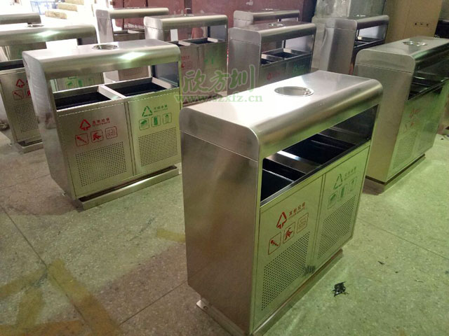 不銹鋼沖孔分類垃圾桶工廠批量生產