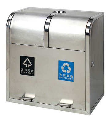 • 使用范圍:腳踏式推蓋不銹鋼分類垃圾桶表面光滑、亮麗,是電梯口、寫字樓、學校、物業、賓館、酒店、機場、汽車站等擺放的首選。
