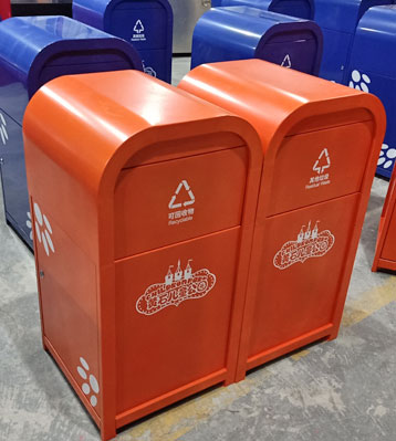 景區鋼板烤漆垃圾桶—游樂園鋼制噴塑垃圾桶廠家
