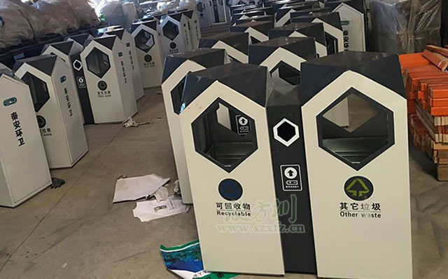 使用客戶:廣西來賓房產鋼制環保分類垃圾桶 發布時間:2017-10-10