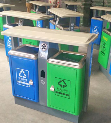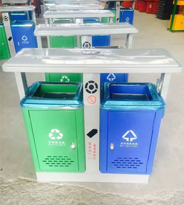 欣方圳環(huán)保分類(lèi)戶外鐵垃圾桶批量生產(chǎn)圖