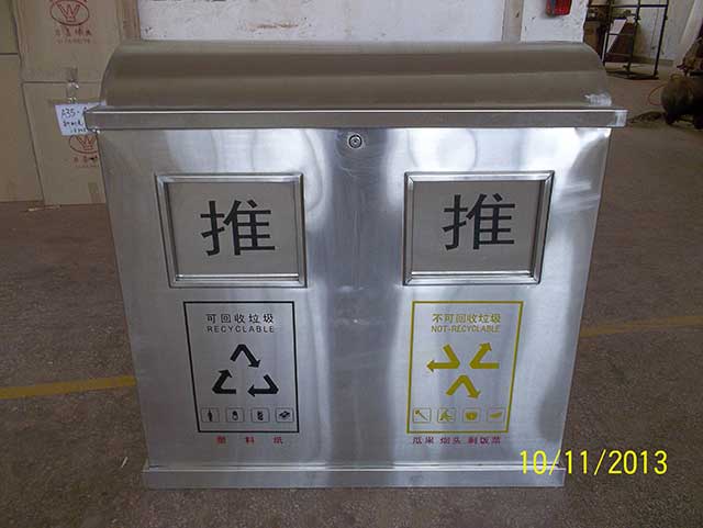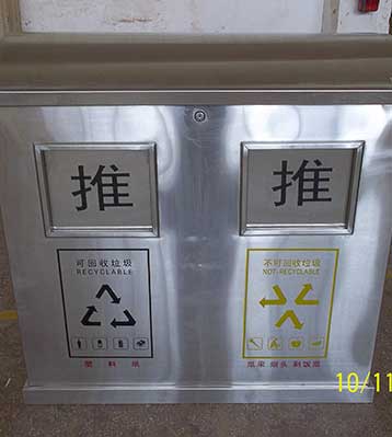 • 使用范圍:不銹鋼分類垃圾桶表面光滑、亮麗,是電梯口、寫字樓、學校、物業、賓館、酒店、機場、汽車站等擺放的首選。