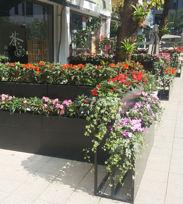 商業街戶外雙層組合金屬烤漆花箱實景圖
