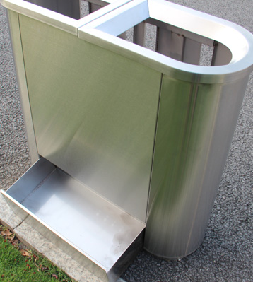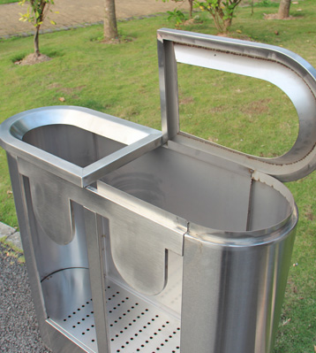 • 產品材質:地鐵透明防爆分類垃圾箱可采用201#,202#,304#優質不銹鋼材料模壓成型,堅固耐用,不易破損;耐火安全,抗高低溫,適合各種惡劣氣候條件;金屬亮澤 ,高雅美觀,廣泛適用于各種場所;內外表面光潔,減少垃圾殘留,易于清潔;配置鍍鋅板內桶,便于垃圾清倒;
