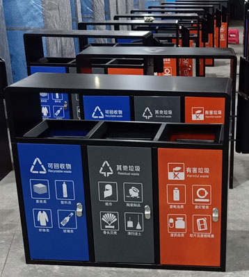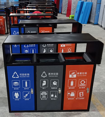 欣方圳戶外三分類垃圾桶工廠批量生產圖
