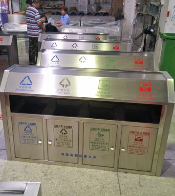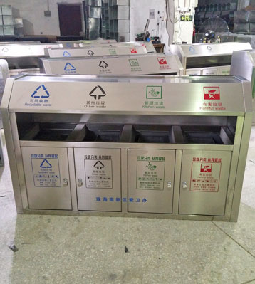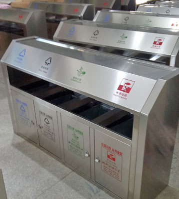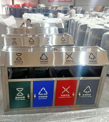 • 使用范圍:斜切面戶外不銹鋼四分類垃圾桶表面光滑、亮麗,是市政、企業、學校、小區、酒店、機場、汽車站等戶外分類垃圾收集擺放的首選。