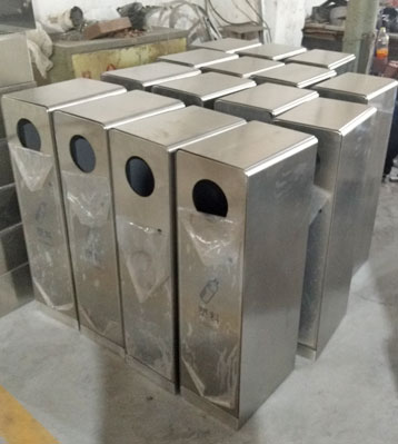 欣方圳不銹鋼戶外五分類組合垃圾箱批量生產圖