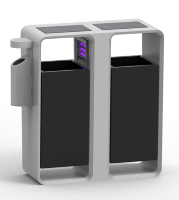 • 設計說明:采用無縫一體化的設計理念,太陽能板搭配滅蚊燈在戶外垃圾桶上的應用,前沿科技賦能,特殊光譜精準吸引蚊蟲,物理滅蚊安全無毒,展現城市管理智慧化、精細化形象。讓公共空間更潔凈、更健康。