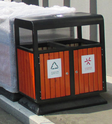 欣方圳社區(qū)戶外鋼木分類垃圾桶桶身細(xì)節(jié)圖