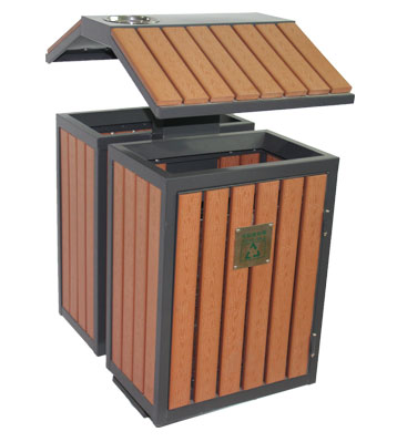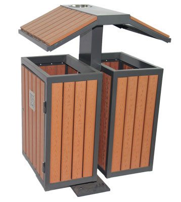 • 產品材質:屋形環保鋼木分類垃圾箱定制可選進口實木(防腐木.紅胡桃.山樟木等)、鋼結構、塑木等。