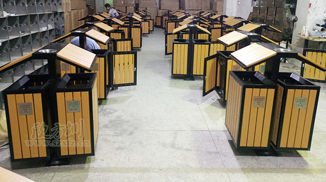 屋形鋼木分類垃圾箱工廠生產圖