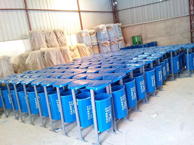 玻璃鋼垃圾桶桶身和內膽部分,采用高級玻璃鋼材質一次成型,經過打磨、除塵 、噴漆等一系列后期工藝然后出成品。